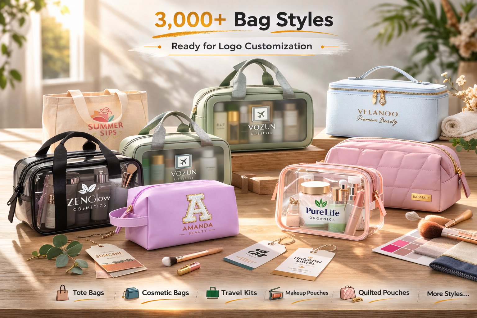 We partner with beauty brands, retail chains, promotional companies, and e-commerce sellers worldwide to manufacture high-quality custom bags in bulk. Below are selected examples of recent logo customization projects across different styles and materials.
